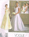Lined dress with fitted, princess seamed bodice and open front and back neckline has self train, back drape with bow and rosette trim, back zipper and lace trim and bridal applique. V. 1 has long sleeves. V. 2 has very short sleeves. Collar and yoke can be created with additional lace or trim or purchased collar and appliques may be used. JESSICA McCLINTOCK sewing pattern printed in 92 and added 2/11/14.
