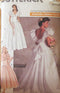 Dress, above ankle or floor length, has elasticized ruffle, close-fitting, lined bodice and shaped midriff with side front and side back seams, back inset, flared skirt with side panels (no side seams), back zipper, and armhole ruffles or above elbow sleeves with stiffening and elastic at lower edge. A: train and bow with knot. Petticoat, above ankle or floor length, has waistband, attached ruffles and back zipper. Sewing pattern copyright 88 and added 10/18/17 by td.