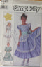 GIRLS AND CHILDS JUMPER AND CULOTTE JUMPER IN TWO LENGTHS AND JUMPSUIT SIZED FOR STRETCH KNITS ONLY: JUMPER AND JUMPSUIT WITH SIDE SEAM POCKETS AND PLEATS HAS NARROWLY HEMMED NECK and armhole edges. V. 1 culotte-jumper and V. 3 jumper are calf-length. V. 2 culotte-jumper and V. 4 jumper are above knee length. V. 5 jumpsuit has tapered legs with optional detachable elastic stirrups with VELCRO tm. Simplicity EASY TO SEW sewing pattern copyright 91 and added 10/29/17 by td.