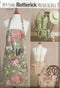 Package includes patterns and instructions for five aprons A, B, C, D, E in size small (8-10), medium (12-14), and large (16-18). A: purchased contrast bias binding. B. contrast pocket C; contrast pocket and ruffles. D, E: contrast upper apron. B, C, D, E: contrast waistband and ties. This sewing pattern printed in 10 was added on 9-14-14 by jh.