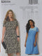 Semi-fitted dress (fitted through bust) has seam detail, back zipper, and very narrow hem. A: Front neck slit and applied yokes. Sewing pattern copyright 14 and added 1/29/21 by td, pic 8185.