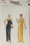 Straight dress, evening length, has lined, shaped, front skirt pleated into bias, self-lined, gathered bodice with elasticized upper edge and side zipper. A: Attached bow. B: Bias shoulder straps. Sewing pattern added 11/1/17 by td.