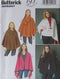 Very-loose, wrap and cape have collar and closure variations. A: Collar extends into left side bow end, looped through seam opening. A, B: Serge or raw edge finish, hook and eye closing. C: Reversible. D: wrong side shows, narrow hem, and snap closure. B, D: Purchased decorative closure. C, D: Front and back extended into collar. Sewing pattern copyright 13 and added 1/29/21 by td, pic 8174.