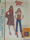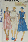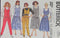 Misses' jumper, dress, top, skirt and belt: Semi-fitted, slightly-flared jumper or dress, in below mid-knee length , or top has square neckline with bands, front buttoned placket and topstitch trim. With or without cap sleeves, self tie belt and pockets in side seams. Slightly-flared skirt, in below mid-knee length, has waistband . Purchased T-shirt and blouse.