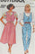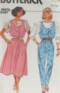 Misses' jumper, jumpsuit and top: Flared jumper, below mid-calf or tapered jumpsuit has very loose-fitting, blouson bodice, low cutaway armholes, elastic [seamed] waistband pockets. Loose fitting, pullover top has dropped shoulders and above elbow sleeves rolled -up or long sleeves.