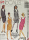 Jumpsuit and set of dresses in two lengths with bodice front and back pleated at waist and to yoke forming forward shoulder seams, has elastic at waist and at side seam pockets, view A has zipper in pants front and a concealed button closure in bodice; dresses B or C have concealed front button closure, pattern for belt and shoulder pad cover included. Sewing pattern printed in 91 and added on 9-23-14 by jh.