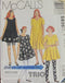 Misses'/Women's Maternity Top, Dress, Belt, Shorts and Pants: Very loose-fitting, pullover tops A,C or dresses B, D have neck and front bands, cap sleeves or below elbow sleeves with elastic. B: Self belt. Loose-fitting, pull-on short E, pants F have raised elastic waist. All have narrow hems.