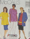 The top-stitched tops V. 1, 2, 3 or 4 with back zipper have square neckline and shaped belt, stitched in front and tied in back. V.1 has long set-in sleeves gathered with elastic casings forming self ruffles. V. 2 has short set-in sleeves gathered with elastic casing forming self ruffles. V. 3 has embroidered eyelet edging armhole ruffle. V. 4 is sleeveless. Retro sewing pattern printed 19-75 and added 1/31/14.