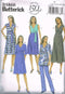 Semi-fitted and flared, wrap top or dress has tie ends and topstitching. A, B: Sleeve bands. D: Collar. D, E: Cap sleeves. Fitted, boot-legged pants have yokes. All have stitched hems.Maternity sewing pattern printed in 12 and added 2/1/14.