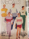 Fitted, waist length, lined-to-edge jacket wit or without applied contrast stripe has stand-up collar, front separating zipper, zippered pockets and full-length sleeves with elasticized snow shields at wrists. Zipper in back and hammer-on snaps in front attach inside waistband to upper edge of pants. Straight-legged lined pants have waistband, mock fly front zipper and elasticized snow shields at ankles. Optional purchased suspenders. Sized for nine-ten oz. quilted fabrics. Vintage ski sewing pattern added 5/20/16 by td.