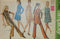 The dress V. 1, 2, 3 &4 with high round neckline and and back zipper have long set-in sleeves and biasd-roll collar. The lined jerkin V. 1, 3 & 5 without side seams have optional top-stiching and tabs at each side buttoned to belt. V. 1 has self fabric belt. V. 3 & 5 have chain belt. Dress and jerkin V. 1 and dress V. 2 are regular length. Dress V. 3 & 4 are jerkin V. 3 & 5 are mini-length. Pants V. 4 & 5 have side zipper and Waistband.