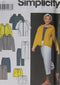 Slightly oversized hooded jacket A, B has front zipper, raglan sleeves and side seam pockets. A has long sleeves; B has short sleeves. Relaxed fit pull on pants C or shorts D and skirt E worn I inch below waistline have side seam pockets and waistline casing with self or purchased cord drawstring. C in capri length have side slits. E has front slit. Sewing pattern copyright 00 and added 1/19/21 by td.