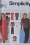 Semi-fitted, princess seamed below waist length Top A and B and knee length Dress c and D have jewel neckline, front buttons and sleeves pleated to armhole. A and B have shaped front hemline. A and C have long sleeves. B and D have short sleeves with optional pleat detail. Pants A and B have waistband, back zipper and front and back darts. Sewing pattern copyright 95 and added 1/19/21 by td.