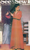 Very loose-fitting, A-line, wrap robe, evening length, has puritan collar, inside ties, side pockets, deep armholes, seven-eights length sleeves with fold-back cuffs or full length sleeves, belt carriers and self tie belt. Purchased trim for B. FAST AND EASY sewing pattern added 10/18/17 by td.