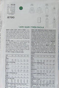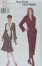 Loose fitting unlined slightly below hip jacket has shawl collar, shoulder pads, shaped hemline, side slits and long sleeves. This sewing pattern printed in 93 and added on 8-18-14 by jh.
