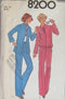 Fitted buttoned jacket has back yoke, notched collar, pockets with flaps, back vent and optional vent, two-piece sleeves have button trim. Buttoned vest has shaped front seaming. Back yoked skirt and pants have back zipper. Skirt has side front pleats below stitch trim. This sewing pattern printed in 77 and added on 9-20-14 by jh.