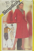 Dress and jacket with optional top-stitching can be worn with scarf. Dress with skirt gathered to bodice at normal waistline, cut-in armholes, back zipper and side seam pockets can be worn with self tie belt. Jacket has long set-in sleeves with optional turn-back cuffs and button and chain closure. Dress and jacket sewing pattern printed in 81 and added 2/20/14.