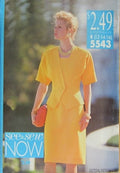 VERY EASY SEWING PATTERN: Loose-fitting, unlined, above hip jacket ((semi-fitted through waist) has shoulder pads, princess seams, shaped front, hemline and elbow sleeves. Loose-fitting straight dress (fitted through waist) below mid-knee, has shoulder pads, cap sleeves, back zipper and hemline slit. This sewing pattern printed in 91 and added on 9-24-14 by jh.