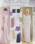 Misses'/Miss Petite Lined Tops, Skirts and Stole: Lined tops have princess seams and back button closure; top A has three-quarter sleeves and optional trim; top B is sleeveless and has princess seam notches; top C has gathered straps; top D has optional jeweled straps; top E has lace trim; skirt F or G has waistband and back zipper; skirt G has left side slit and front and back darts.
