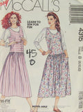 Misses' Jumpers and Top -Top for stretch knits only: Pullover or front button jumper has dropped waist, full gathered skirt with or without front patch pockets. Long or short sleeve pullover top has extended shoulders and back keyhole opining.