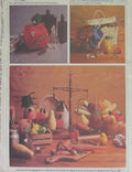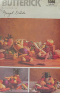 Fruits and vegetables: leaves, corn, pineapple, eggplant, banana, carrot, squash, pear, apple, orange, pumpkin