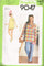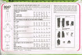 Out of print sewing pattern for (CUT) V. 1 & 2 top has back loop and button closing, set-in sleeves, pocket and top-stitching. V. ! has long sleeves with turn-back cuffs. V. 2 has short sleeves. Pants V. 1 and shorts V. 2 have self drawstring through waistline casing. Shorts have turn-back cuffs.