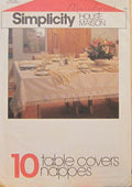 Out of print sewing pattern for Tailored round, welted round,ruffled round, oval, round, bordered square, lace trimmed, tape trimmed tableclothes. Placements, napkins and runners.