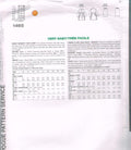 Tunic, above mid-knee, has collar, shoulder pads, front and back pleated into lined bodice, side slits and long, wide sleeves. Slightly tapered skirt, above mid-knee, has elastic raised waist with front pleats. Vogue Lauren Sara out of print sewing pattern printed 1994 and added 11/14/13.