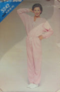 Jumpsuit has loose-fitting, blouson bodice, partially elasticized drawstring, mock band with button or snap closing, side pockets, elasticized lower edge and full length, three-piece sleeves elasticized at lower edge. Purchased drawstring. Jumpsuit sewing pattern added 2/5/14.