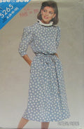 Dress, mid-calf length, has tucked collar on band (contrast inner collar), semi-fitted bodice, A-line skirt, side pockets, back zipper, belt and below elbow length sleeves. Retro sewing pattern added 2/8/14.